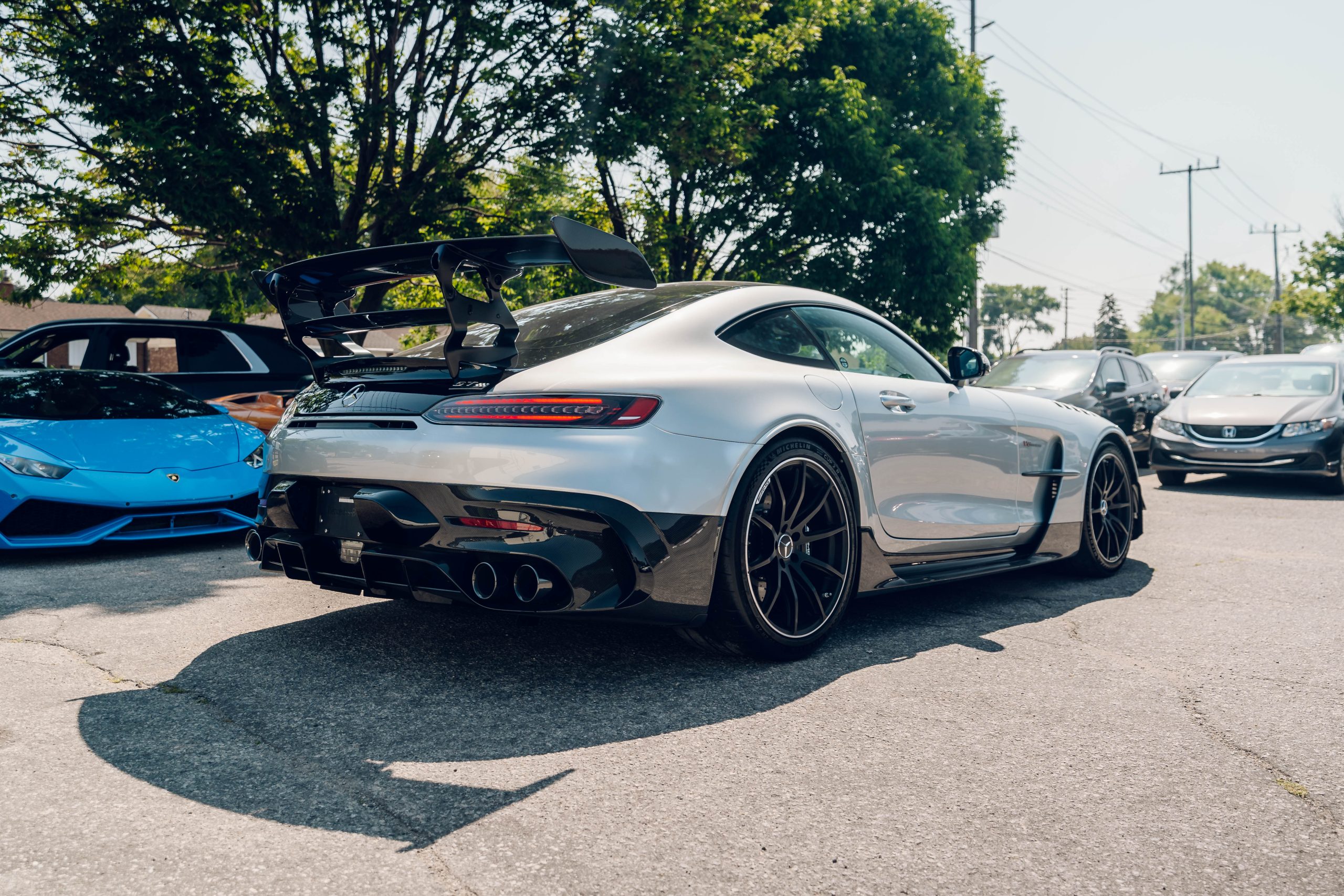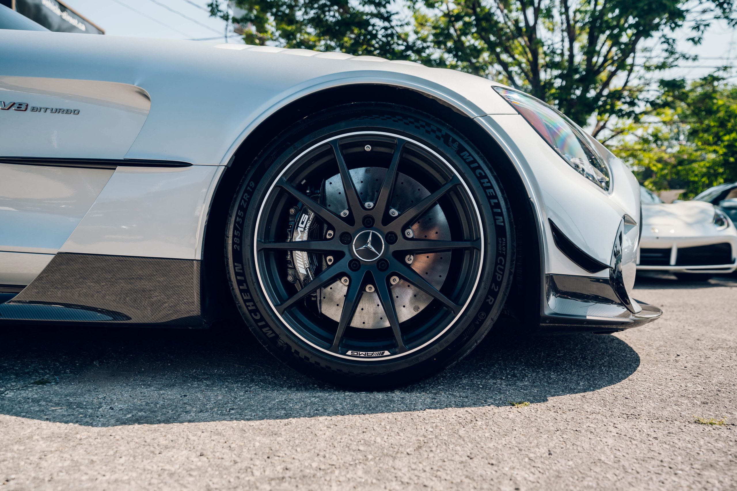 - AMG 19”/20” Staggered 10-Spoke Rims finished in Satin Black with Polished Rim, on Michelin Pilot Sport Cup 2R with Black Series Branding.