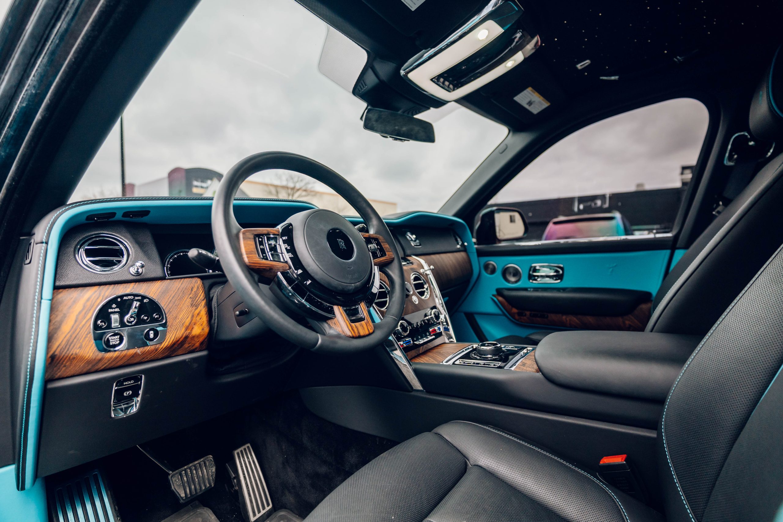 - Full Bespoke Black and Dark Teal Leather Interior.